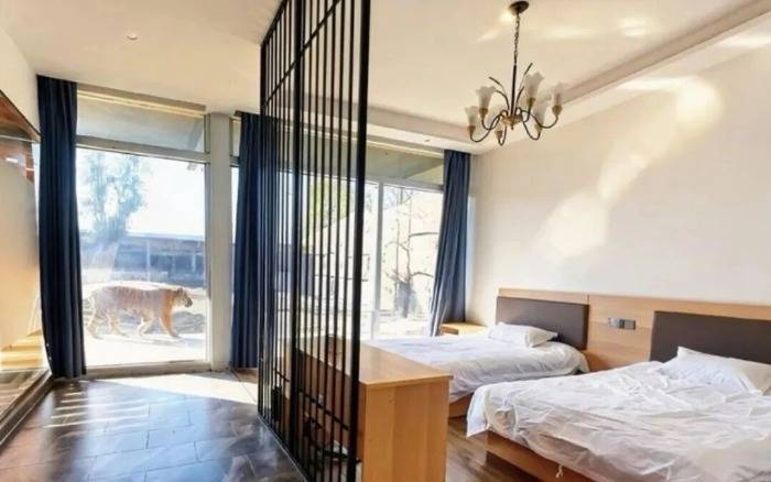 大皖新闻讯 近日,河南焦作沁阳市和生森林动物乐园因推出可近距离观赏老虎的落地窗式“虎景房”引发社会关注。4月16日,大皖新闻记者从和生森林动物乐园获悉,“五一”假期期间,该动物乐园推出的30多间“狮虎主题”特色客房预订紧俏。“五一期间的房间已经订了七七八八了。”动物乐园工作人员说道。