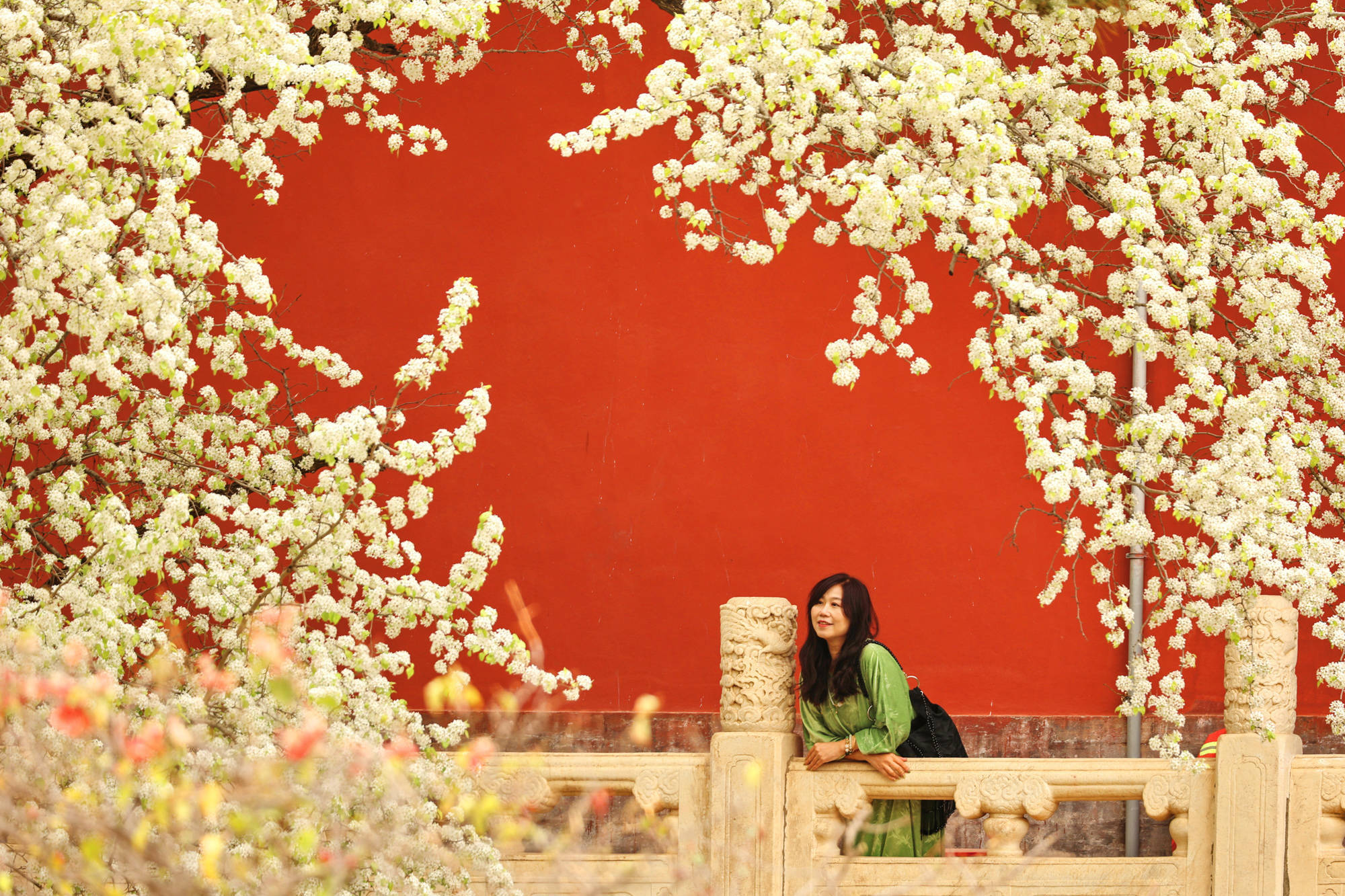 ↑2026年4月14日,游人在北京明十三陵长陵景区赏花拍照。CICPHOTO/刘宪国 摄编辑:张雪萌