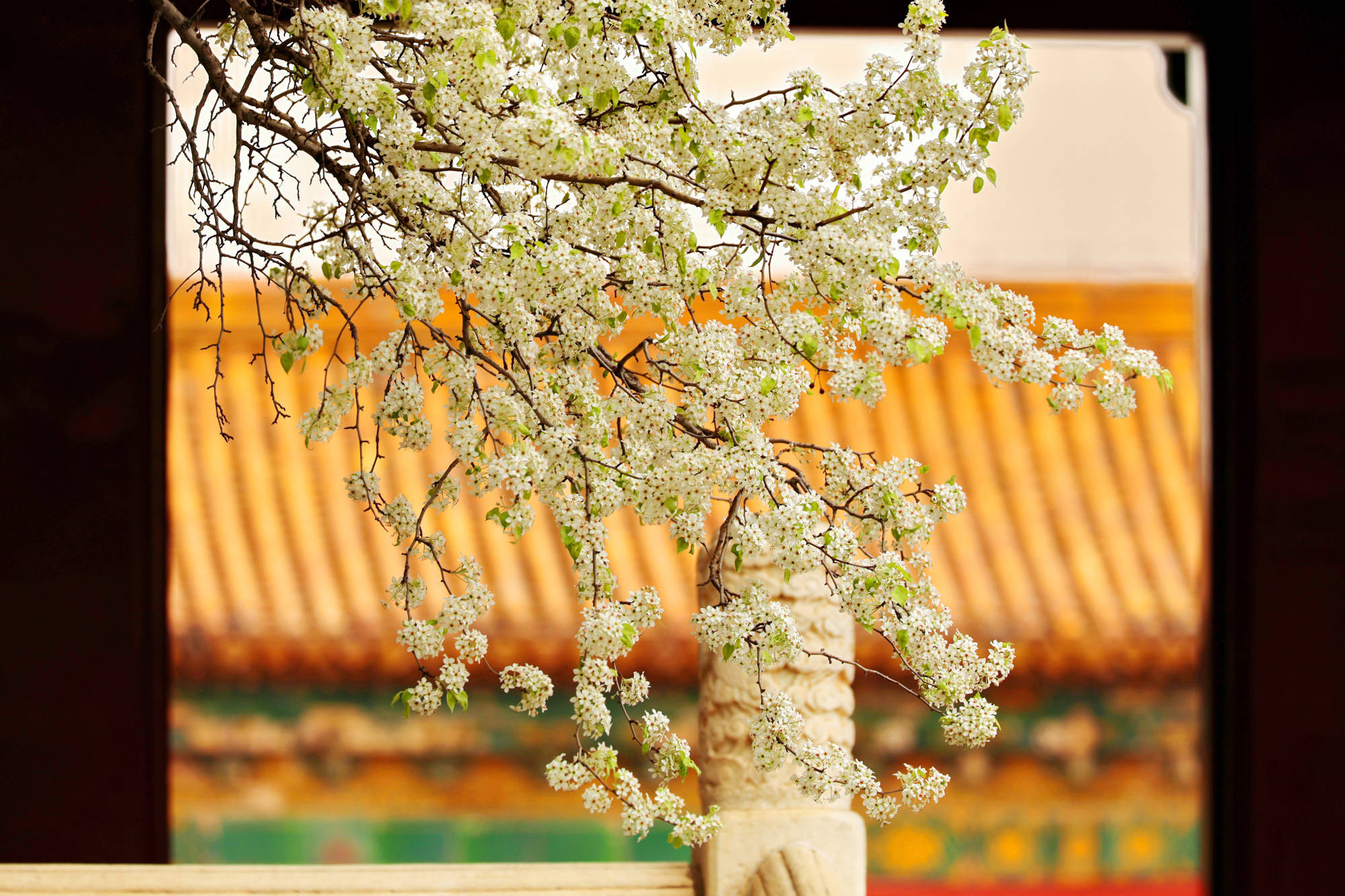 ↑2026年4月14日在北京明十三陵长陵景区拍摄的杜梨花。CICPHOTO/刘宪国 摄